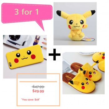 [3 for 1] Pokemon Pikachu Plush Keychain + Phone Casing + Cozy Slipper